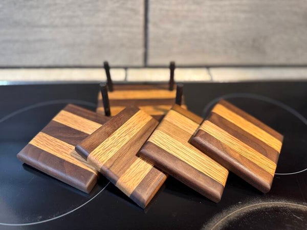 Handcrafted Oak & Walnut Coasters – Natural Wood Elegance